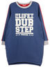 Платье до колена, перед укорочен, длинный рукав, в боковых швах карманы. На груди стильный принт. Изготовлено из петельчатого футера с полиэстером.