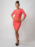Классическое трикотажное платье для офиса. Модель с рукавами 3/4 и округлым вырезом горловины. Приталенный крой подчеркивает достоинства фигуры. Отличный вариант на каждый день. Модель дополнена поясом на талии контрастного цвета.