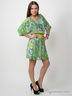 Летнее платье из шифона, на подкладке. Изделие выполнено в яркой расцветке. Пояс - вшивная резинка. Модель с короткими рукавами и округлым вырезом горловины. Отличный вариант на каждый день.