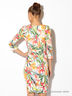Великолепное платье с рукавами 3/4 и фигурным вырезом горловины. Приталенный силуэт. Оригинальная модель из легкого трикотажа и ярким принтом. Сядет на любой тип фигуры. Прекрасный вариант для повседневной носки.