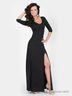 Макси-платье из "холодного" трикотажа. Глубокий вырез горловины и разрез спереди создадут образ роскошной и соблазнительной женщины. Платье плотно облегает в области талии и выигрышно подчеркивает ее.