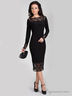 Очаровательное вечернее платье, выполненное из тонкого трикотажа универсальной расцветки. Модель приталенного покроя с длинными рукавами и округлым вырезом горловины. Изделие дополнено вставками из контрастного по фактуре материала. Отличный вариант на каждый день.