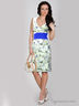 Замечательное платье приталенного покроя. Модель с короткими рукавами и глубоким вырезом декольте выполнена из принтованной ткани контрастной расцветки. Изделие дополнено вставкой на талии из контрастной по цвету ткани, что делает талию визуально уже. Эта модель станет хитом Вашего гардероба!