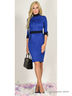 Платье приталенного покроя с рукавами 3/4 и воротником стойка. Изделие дополнено вставками из ткани контрастной расцветки. Отличный вариант на каждый день. Эта модель станет хитом Вашего гардероба!