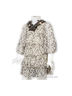 Стильное платье для юной модницы. V-образный вырез горловины. Застежка на молнию на спине. Укороченные свободные рукава. Платье декорировано многорядными оборками. Платье дополнено крупными оригинальными бусами.
