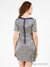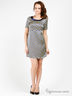 Повседневное женское платье выполнено из шелковистого материала. Изделие с округлым вырезом горловины, короткие рукава. Застежка на металлическую молнию в спинке.