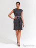 Очаровательное платье без рукавов с округлым вырезом горловины. Модель приталенного покроя подчеркивает достоинства фигуры. Оригинальная расцветка в горох. Отличный вариант как для повседневной носки, так и для создания праздничного образа.
