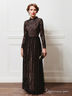Прекрасное платье с отложным воротником и длинными рукавами. Модель дополнена застежкой на молнию. Приталенный крой. Изделие декорировано кружевом.