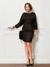 Прекрасное женственное платье с округлым вырезом горловины и рукавами длиной 7/8. Модель дополнена застежкой на молнию. Сзади - центральная шлица. Приталенный крой.