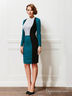 Стильное платье эффектной контрастной расцветки. Модель облегающего силуэта великолепно подчеркивает достоинства вашей фигуры. Изящный V-образный вырез горловины.