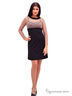 Платье прилегающего силуэта, с длинными цельнокроеными рукавами, с застежкой на 2 навесные петли пуговицы в среднем шве спинки. Верхняя часть платья выполнена из отделочной ткани, нижняя часть и кокетка на бретелях - из трикотажа. Нижняя часть платья и верхняя со средним швом по спинке.
