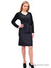 Платье полуприлегающего силуэта с U-образной горловиной. Рукава реглан, втачные, длинные из гипюра на подкладке. По лифу переда заложены шесть защипов, на нижней части переда два защипа. Спинка с 4 талевыми вытачками и средним швом, заканчивающимся шлицей. В среднем шве спинки застежка молния.