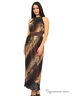 Платье прямого силуэта с воротником-стойкой, завязывающемся по спинке. Американские проймы платья обработаны окантовками. Перед с отлетной деталью жабо. Спинка со средним швом. Платья носят со съемным поясом, застегивающимся на 3 навесные петли и пуговицы. Стойка, окантовка проймы и съемный пояс изготовлены из отделочной ткани.