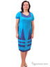Платье полуприлегающего силуэта, с втачными короткими рукавами, на участках подгибки собраны на резинку. Горловина фигурная, обработана декоративными кокетками из отделочной ткани. Спинка и перед с рельефными швами. Перед с накладными карманами и декоративными планками из отделочной ткани. Низ платья обработан притачной манжетой с резинкой на боковых участках.