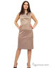 Платье прилегающего силуэта, с декоративной горловиной. Платье без рукавов. Проймы обработаны обтачками. Горловина обработана обтачками. Перед с фигурными подрезами. По переду нагрудная и рельефные швы. Спинка со средним швом и талевыми вытачками. В среднем шве спинки по низу шлица.