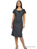 Платье прилегающего силуэта с круглой горловиной, с короткими втачными декоративными рукавами. Художественный замысел рукавов достигнут конструктивным методом. Спинка со средним швом и талевыми вытачками. В среднем шве спинки втачана потайная молния, по низу шлица. Перед с рельефными швами. По переду отлетная планка и декоративный бант, продетый в шлевку.