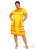 Платье полуприлегающего силуэта, с втачными короткими рукавами, на участках подгибки собраны на резинку. Горловина фигурная, обработана декоративными кокетками из отделочной ткани. Спинка и перед с рельефными швами. Перед с накладными карманами и декоративными планками из отделочной ткани. Низ платья обработан притачной манжетой с резинкой на боковых участках.
