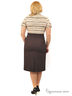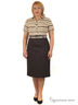 Платье прилегающего силуэта, с застежкой на потайную молнию в среднем шве спинки, отрезное по линии талии, с втачным воротником на стойке. Платье с короткими рукавами, низ рукавов присборен на участках и окантован. Борта обработаны планками с застежкой на 3 петли и пуговицы. Нижняя часть платья выполнена из отделочной ткани. Лиф полочки с рельефами, лиф спинки со средним швом и двумя талевыми вытачками. Нижняя часть платья с талевыми вытачками. В боковые швы вставлены полупояса, продетые в две шлевки, застегивающиеся на пряжку.