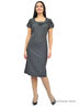 Прекрасное платье средней длины. Модель с короткими рукавами и округлым вырезом горловины. Изделие оформлено стильным узором.