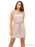 Лаконичное платье с фигурным вырезом горловины, без рукавов. Модель дополнена кружевными вставками. Линию талии подчеркивает поясок.