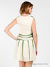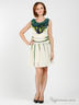 Изящное яркое платье, с очень оригинальной отделкой в области груди. Силуэт приталенный, округлый вырез горловины декорирован бисером, застежка на молнию сбоку, талия и юбка декорированы цветными оборками. Это веселое пестрое платье с цветочными узорами прекрасно подойдет как для прогулки, так и для свидания.