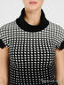 Детали: широкий ворот-гольф; низ изделия дополнен широкой трикотажной лентой; оригинальный принт