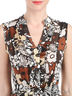 Детали: застегивается на пуговицы спереди и на молнию сбоку; декорировано оригинальным принтом и оборками; пристроченный пояс