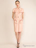 Детали: отложной ворот; короткий рукав; застегивается на пуговицы; два накладных кармана; в шлевки продет пояс; кокетка на пуговицах