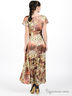 Детали: V-образный вырез с запахом; короткий цельнокроеный рукав; втачной пояс; застегивается на молнию сбоку; оригинальный принт