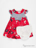Нежное и романтичное платье на девочку. Модель украшена ярким принтом и оборками. Изделие с округлым вырезом горловины и пышными рукавами. Нарядный вариант для юной модницы. В комплекте идут трусики контрастного цвета.