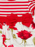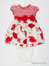 Нежное и романтичное платье на девочку. Модель украшена ярким принтом. Изделие с округлым вырезом горловины и короткими рукавами. На поясе предусмотрен пояс с бантиком контрастного цвета. Застежка на пуговицы на спине. Нарядный вариант для юной модницы. В комплекте идут трусики.