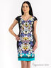 Платье летнее, яркой красивой ткани, нарядное, облегающее, с вытачками на лифе. Горловина V-образной формы. Рукав по типу кимоно, втачной, короткий. Юбка прямая, зауженная книзу.
