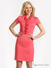 Платье летнее, облегающее по фигуре, с двумя вытачками на лифе, полудлинное выше колена, чуть заужено книзу. Узкий вырез горловины переходит в вырез на лифе и застегивается на пуговицы. Горловина и вырез отделаны пышным коротким воланом по всей длине выреза. Рукав втачной, с небольшими защипами по типу фонарик.