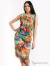 Платье летнее, свободно облегающее фигуру, длина чуть ниже колена. Горловина округлая, переходящая в V-образный неглубокий вырез на лифе. Горловина продета тонкой тесемкой, которая завязывается спереди. Лиф чуть присобран в легкие складочки. Рукавов нет, широкие бретели присобраны. Пояс под резинку, ниже талии, за счет чего лиф слегка ниспадает.
