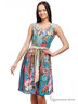Платье летнее, нарядное, отрезное по линии талии. По юбке на талии заложены складки. V-образный вырез горловины. Отделочный пояс.