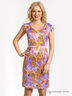 Платье летнее, облегающее фигуру. Горловина с фигурным глубоким декольте. Рукав кимоно, втачной в широких лямках, собран в несколько складочек. Вытачки и защипы на лифе, а так же на юбке в зоне талии. На талии тонкий поясок.