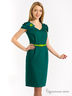 Платье очень нарядного фасона, свободно облегающее фигуру. Горловина с фигурным глубоким декольте. Лиф украшен большим тканевым цветком. Рукав кимоно, втачной в широких лямках, присобран в несколько складочек. Вытачки и защипы на лифе, а так же на юбке в зоне талии. На талии тонкий поясок.