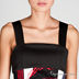 Элегантное платье прямого покроя. Черный лиф выполнен из хлопка шелковистой фактуры. Широкие бретели. Линия талии завышена. Платье отлично садится по фигуре, подчеркивая ее достоинства. Взади небольшой разрез-шлица. Сбоку застежка-молния.