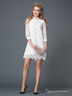Нарядное, женственное платье из кружева-ришелье. Рукава ¾. Силуэт – трапеция. Спереди – планка на пуговицах, воротничок с декоративной подвесной застежкой-цепочкой. Модель для создания легкого и романтичного праздничного образа.