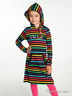 Платье в разноцветную полоску с капюшоном и длинными рукавами. Круглый вырез. Прямой крой. Карман-кенгуру спереди. Логотип на груди. Размер по росту в см.