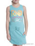 Платье-майка с круглым вырезом, 2 кармана спереди. Пояс на кулиске. Принт спереди.