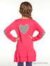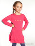 Платье с длинными рукавами и круглым вырезом. Прямой крой. 2 волана с отстрочкой по низу. Налокотники и аппликация "сердце" сзади с рисунком "куриная лапка". Логотип спереди. Размер по росту в см.