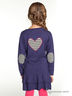 Платье с длинными рукавами и круглым вырезом. Прямой крой. 2 волана с отстрочкой по низу. Налокотники и аппликация "сердце" сзади с рисунком "куриная лапка". Логотип спереди. Размер по росту в см.