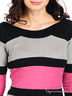 Детали: округлый вырез горловины, укороченный рукав, оригинальная спинка, черные полосы с добавлением люрексной нити