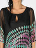 Платье из тонкой шифоновой ткани. На подкладе. Вырез-лодочка. Рукав 3/4, манжеты посажены на резинку. Свободный силуэт. Потайная молния по боковому шву. Фантазийный набивной рисунок.