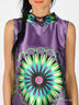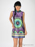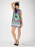 Оригинальное платье в стиле 60-х. Выполнено из шелковистой ткани. Без рукавов. Воротник-хомут. На спинке расположена застежка-пуговичка. Свободный силуэт. Потайная молния проходит по боковому шву.