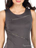 Детали: округлый вырез горловины, застежка на молнию на спинке, фигурные вытачки, полочка украшена декоративными молниями