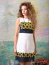 Прекрасное женское платье из льняной ткани с контрастной отделкой, прилегающего силуэта, без рукавов и длиной чуть выше колена. Перед платья декоративно оформлен вязаными цветами ручной работы. Великолепный покрой и длина прекрасно подчеркнут все достоинства фигуры. Отличный вариант для летнего, жаркого дня.