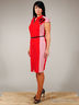 Детали: застегивается на молнию; ворот-стойка; короткий рукав; талия подчеркнута ремешком; сзади шлица; декорировано контрастными вставками