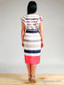 Детали: V-образный вырез, изделие украшено оборками, талия подчеркнута втачным поясом